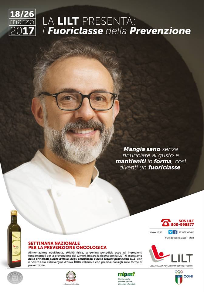 Lo scopo della campagna è quello di diffondere la cultura della prevenzione oncologica, attraverso la promozione dei corretti stili di vita, a cominciare dalla condotta alimentare. Quest’anno, alla Settimana Nazionale per la Prevenzione Oncologica hanno gratuitamente prestato la propria immagine il campione di calcio Francesco Totti e lo chef stellato Massimo Bottura, due fuoriclasse dell’alimentazione e, quindi, della prevenzione.
